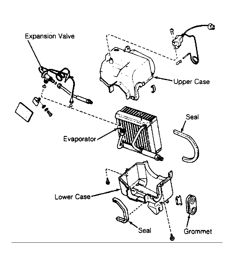 Expansion vale in EVAP case under dash pass side need to remove blower case first. Port on compressor