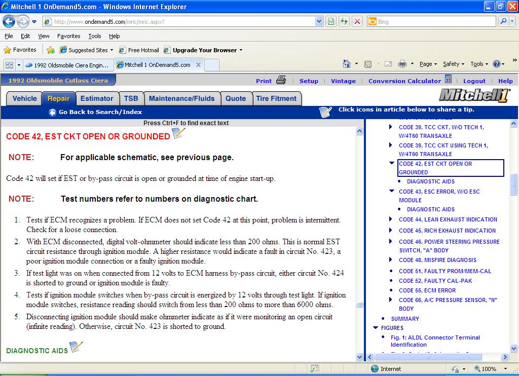 1992 olds cierra shows computer code 42 after the 12s. Car runs good for a while then stalls while driving. What is most likely fix?