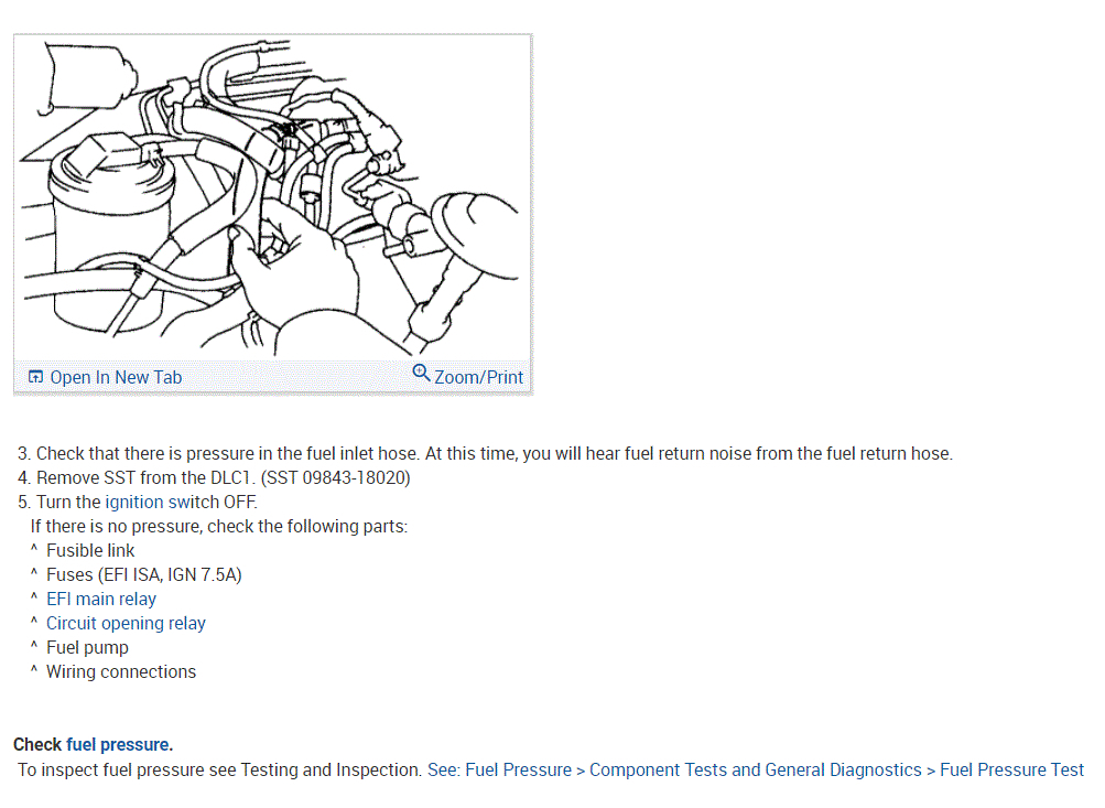 Truck (1992 Pickup 4x4 3vze) has been sitting thankless for a few years. Purged out lines, replaced plugs, replaced tank and fuel pump, changed oil and went to start and turns over but not starting. Fuel pump would not come on when turning the key. Verified Ohm at AFM is between 200-6200 and moves freely. Does not turn on fuel pump. Supplied 12v to the pump directly and fuel pump turns on. Cracked lines at injector and cold start and has great pressure and good return to the tank. Tried to start again and barely ignites first crank or two for a second then shtus off. Will run if using either for testing purposes. Checked and brushed all fuses and verified continuity. All relays are good and tested. A2 30 amp fuses good and EFI has 12v, good spark to the new plugs. Possibly the injectors are all seized from them sitting? Lines were drained when tank was removed 7 years ago. Any advise would be great.