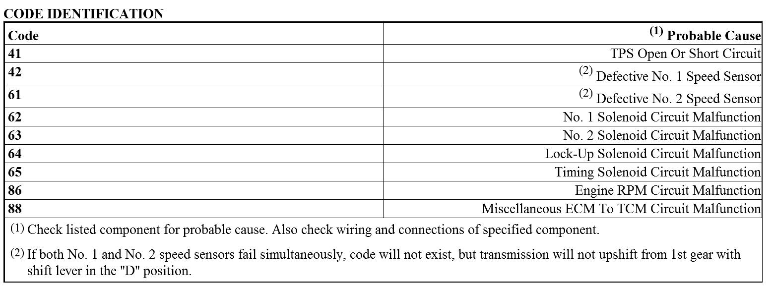 NOTE: Once repairs have been performed, codes must be cleared from TCM memory.
