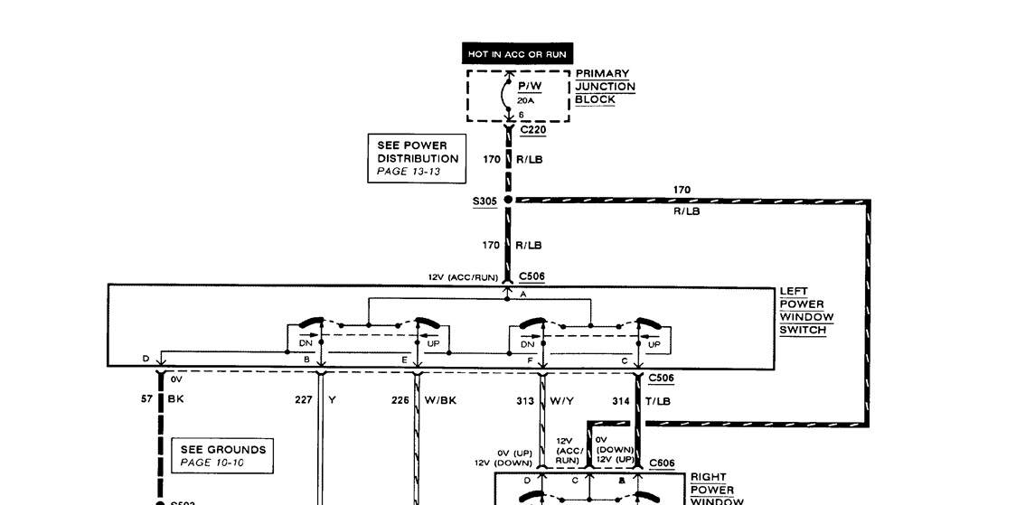 You see the power window circuit in the diagram, use a voltage tester, check the circuit for voltage. Goes hot with the key on.