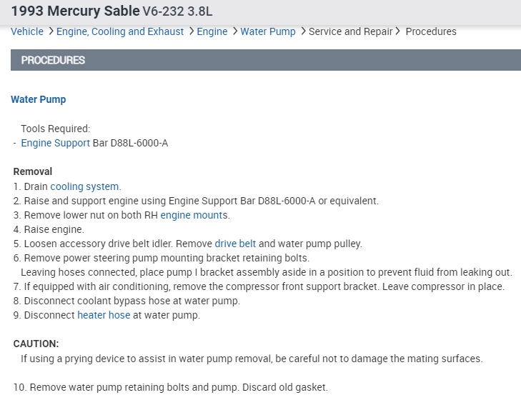 You will need to lift the engine to replace the water pump. Here are the instructions.