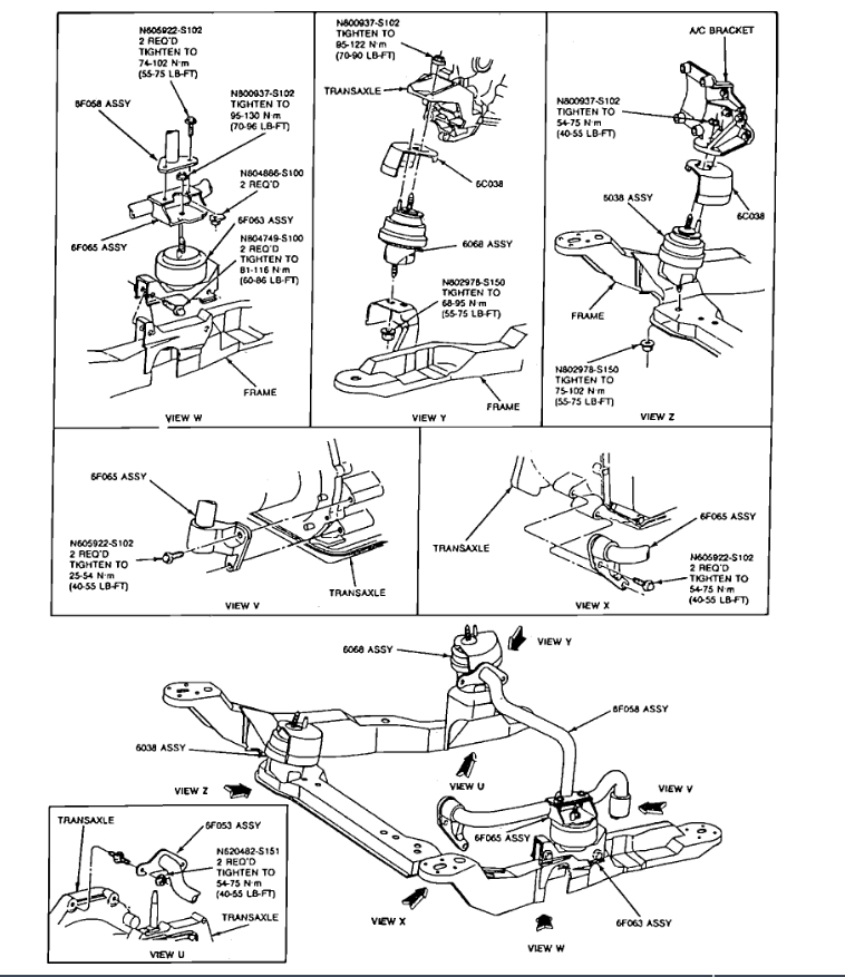 Raise and support engine using Engine Support Bar D88L-6000-A or equivalent.