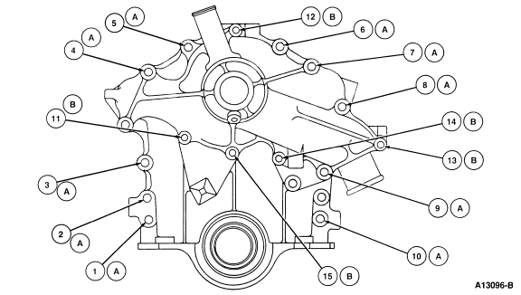 If using a prying device to assist in water pump removal, be careful not to damage the mating surfaces.