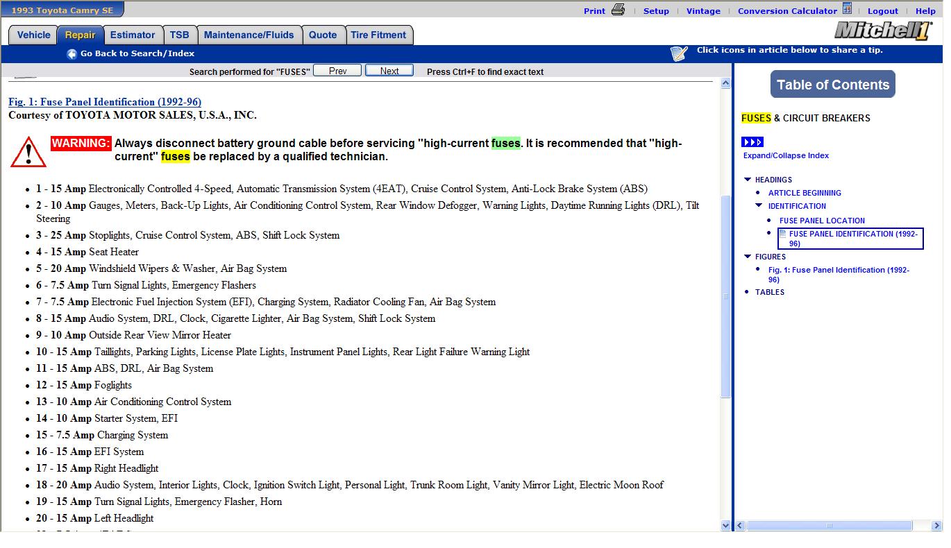 May I get the fuses and relays location anddiagram for this vehicle. 1993 toyota camry 2.2L. Thank You!