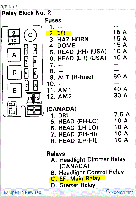 The fuse/relay are located in the number 2 relay box. Panel No. 2 is located in the right hand side of the engine compartment, behind the battery.