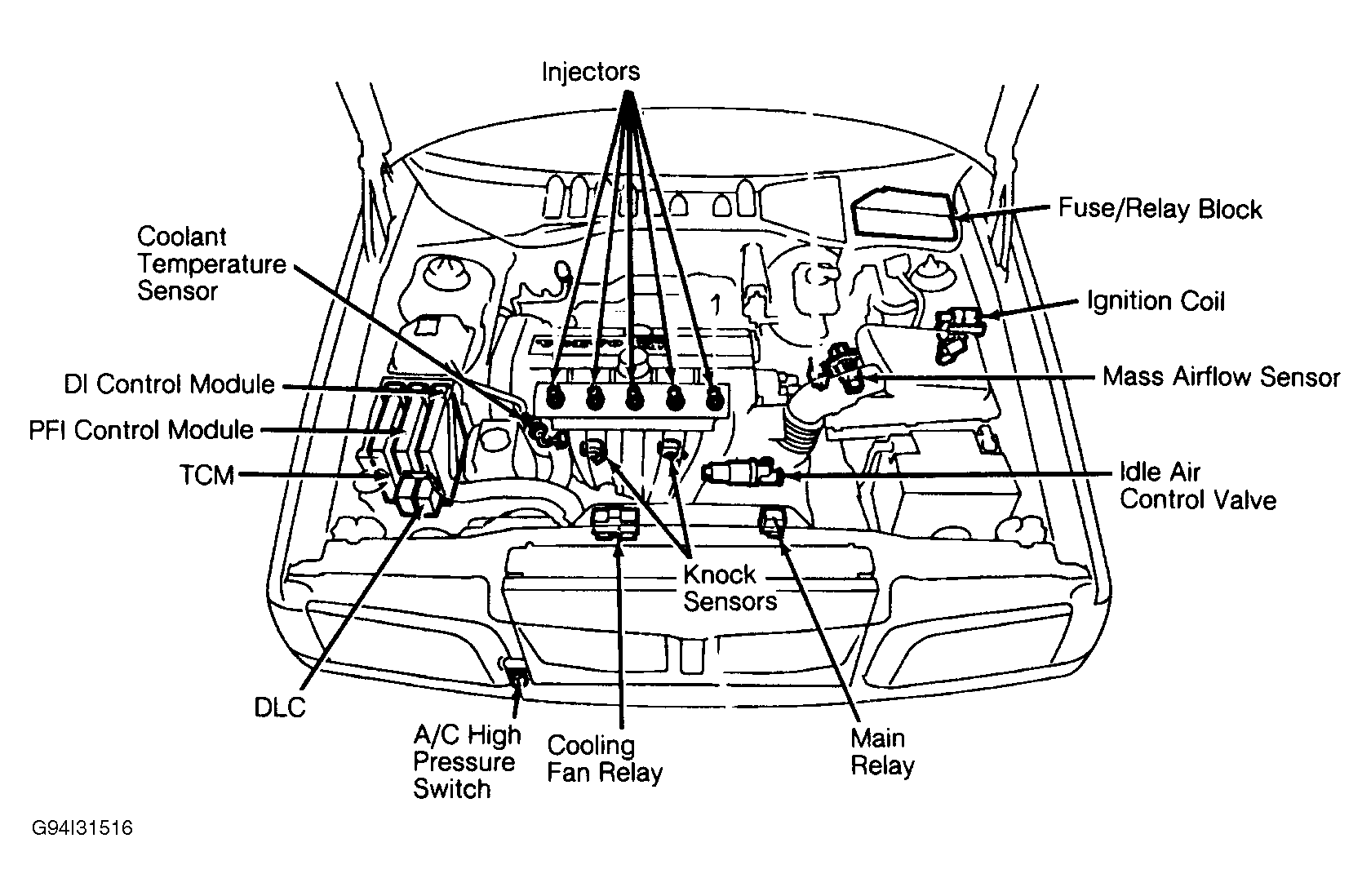 Diagnostic unit in front of right strut tower #2 for injecor test #6 for ignition push button for 1 sec no more than 3 sec LED will flash. There will be 3 sec interval between flashes so flash, flash pause flash, pause flash, flash=212