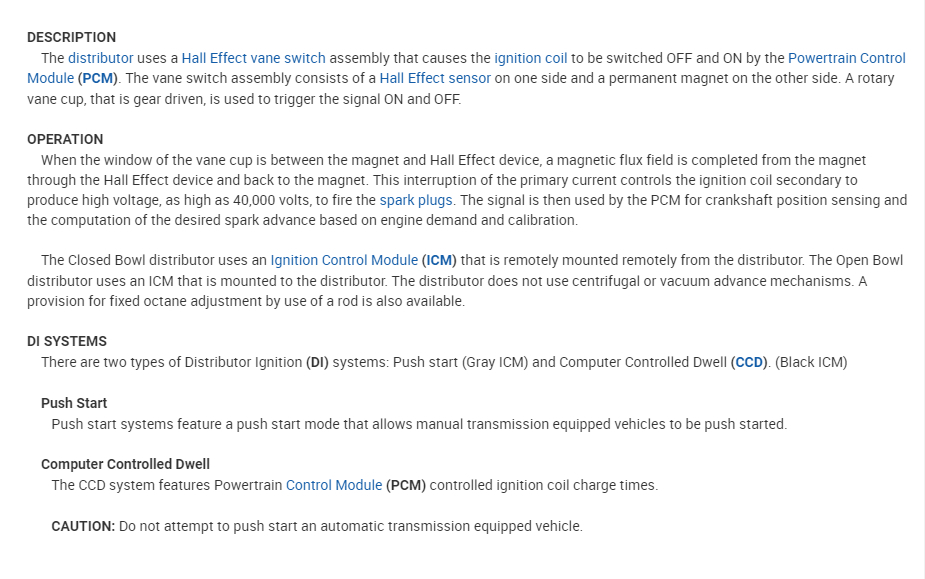 I attached the detail about how this ignition system works for your review. It explains how the system operates and what turns the spark on and off. The PCM is the ultimate control but the vane switch could be the issue as well. However, if the spark is constant from the coil to the distributor then the coil is most likely the issue.