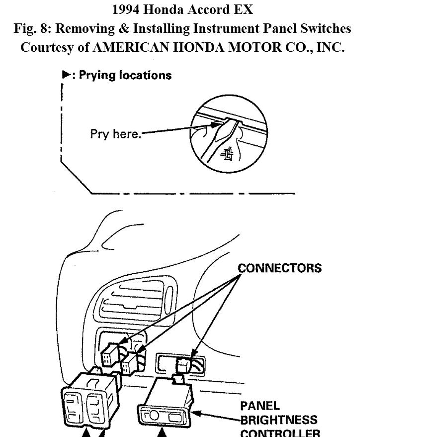 1. Remove front console panel. Remove Glove Box. See Fig. 7. Remove stereo radio/cassette player.