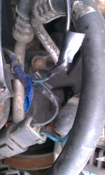The front hose from the radiator has a plug attached at the housing an it has different colored wires than what is hooked up(white with green stripe and black come from car and red with yellow stripe and green with white stripe come from sensor). This about it but will have more questions in future feel like I should fix this first.