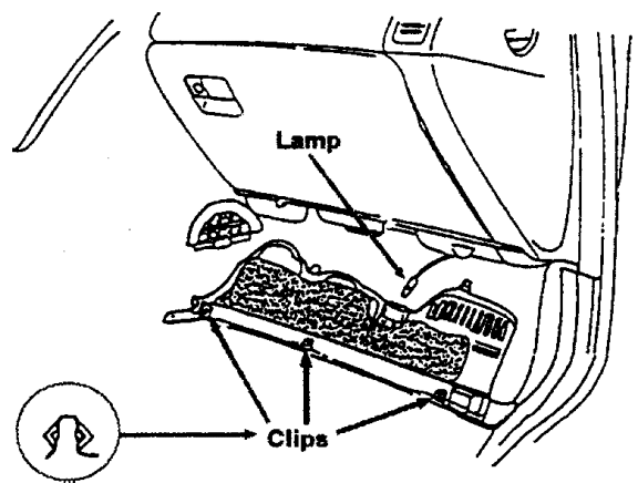 CAUTION: When prying out garnishes (trim pieces) and other parts that are secured by clips, use a plastic tool or a flat-blade screwdriver with tape on the tip to prevent damage.