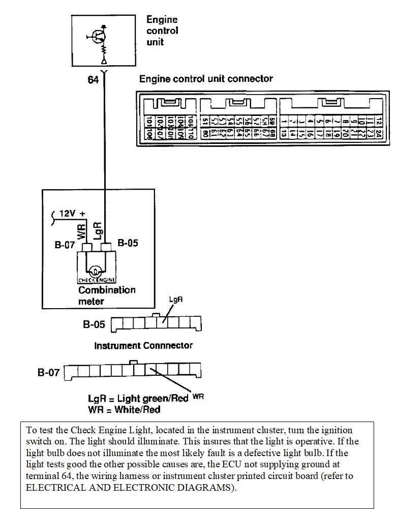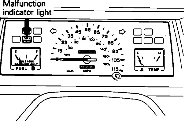 The second drawing shows which is the Check Engine light. If the bulb is suspected to be burned out, I couldn't find the instructions on disassembling the instrument cluster, but the warranty time is listed at only 0.3 hours and 0.5 hours when not in warranty. The non-warranty times are more realistic. Half an hour is not much time which suggests the job is pretty straight-forward and easy to figure out.