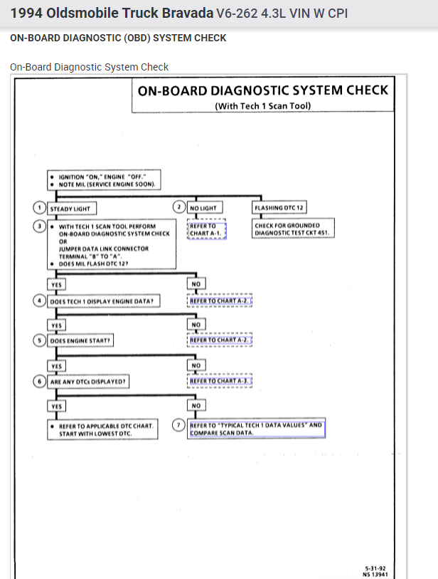 I have a 1994 bravada that has been serviced and properly maintained since it was bought new. It runs great. Recently, when driving down the freeway for a few minutes at about 65 mph, the service engine light comes on. It extinguishes as I exit and start to slow down. I have checked all of the fluid levels and they are fine. Are there any common problems that might cause this?