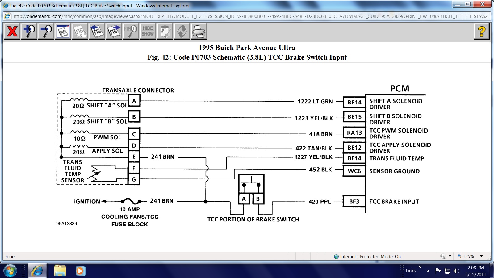 I looked at code p0703, it looked like the easiest. You see the brake switch input and output for the tcc in diagram. Brown wire goes hot with the key on, the switch shows to be normally closed, so the purple wire is hot also, unless you step on the brake, then there is no voltage on the purple wire. I'm talking about the brake switch itself. If everything checks out, and wiring ok, suspect the pcm.