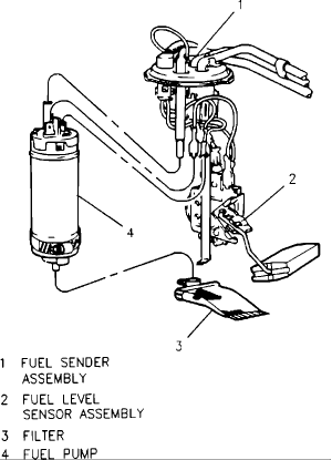 Remove fuel gauge sender and pump assembly by turning cam lock ring counterclockwise. Lift assembly from fuel tank and remove fuel pump from fuel gauge sender unit.