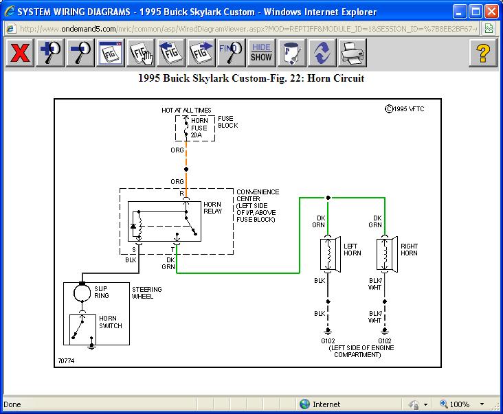 Hello I have a 1995 Buick Skylark custom, 4 cylinder. About a month ago my car horn would only blow the high tone. Also when I would park my car at work and it was very hot outside. When I would come back to the car and start it up the air bag light would go on and stay on for a few mins and a few times when I pushed the horn it the horn would stay on for a while. Im thinking it is the button sticking because now it wont shut off. I have replaced the relay.