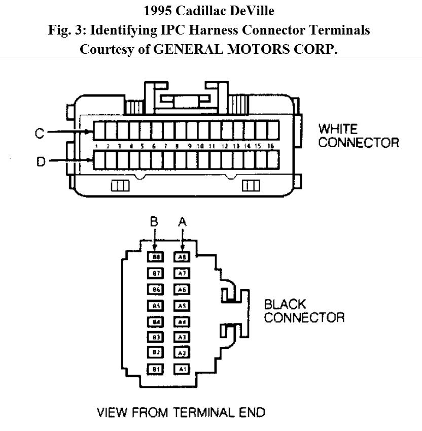 16. Turn ignition off. Disconnect IPC connectors. Leave DERM disconnected. Using DVOM, measure resistance to ground from IPC harness connector terminal C1. See Fig. 3. If resistance is 2000 ohms or less, repair short in Tan wire circuit between DERM and IPC.