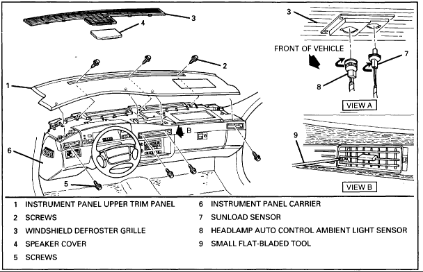 Remove sunload and headlamp auto control sensors from defroster grill.