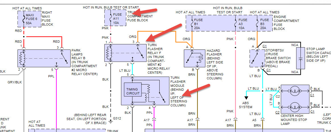 Turn signals stopped working checked fuses all ok and bulbs checked flasher relay behind dash replaced it new no blinkers checked for power to flasher relay no power that's were in at