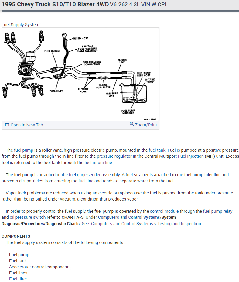 I have a 95 blazer 4.3 vortec, cmfi, edI. My fuel pressure is 60psi and I have spark (I used a test light pooked into the rubber spark plug boot) I went to test my fuel injectors by testing for power and the pulses using a test light(I dissconnected the wirering harness that go's to the injecters) I got a steady light on one wire and nothing on the other. So I was unplugging other sensors to see if I could get a pulse and then I got no power at all going though the one wire so I plugged every thing in and it started right up and ran great for 5 min. Then just shut off, I checked my wire and it had power I tryed starting it a few times and my power went off in the wire agine so I plugged it in and it started right up and died after 3 or 4 seconds I can repeat this over and over aging. Im confussed now. Oh my problem was it felt like it was running out of fuel so I pulled over and it died so I towed it home and started checking thing out.
