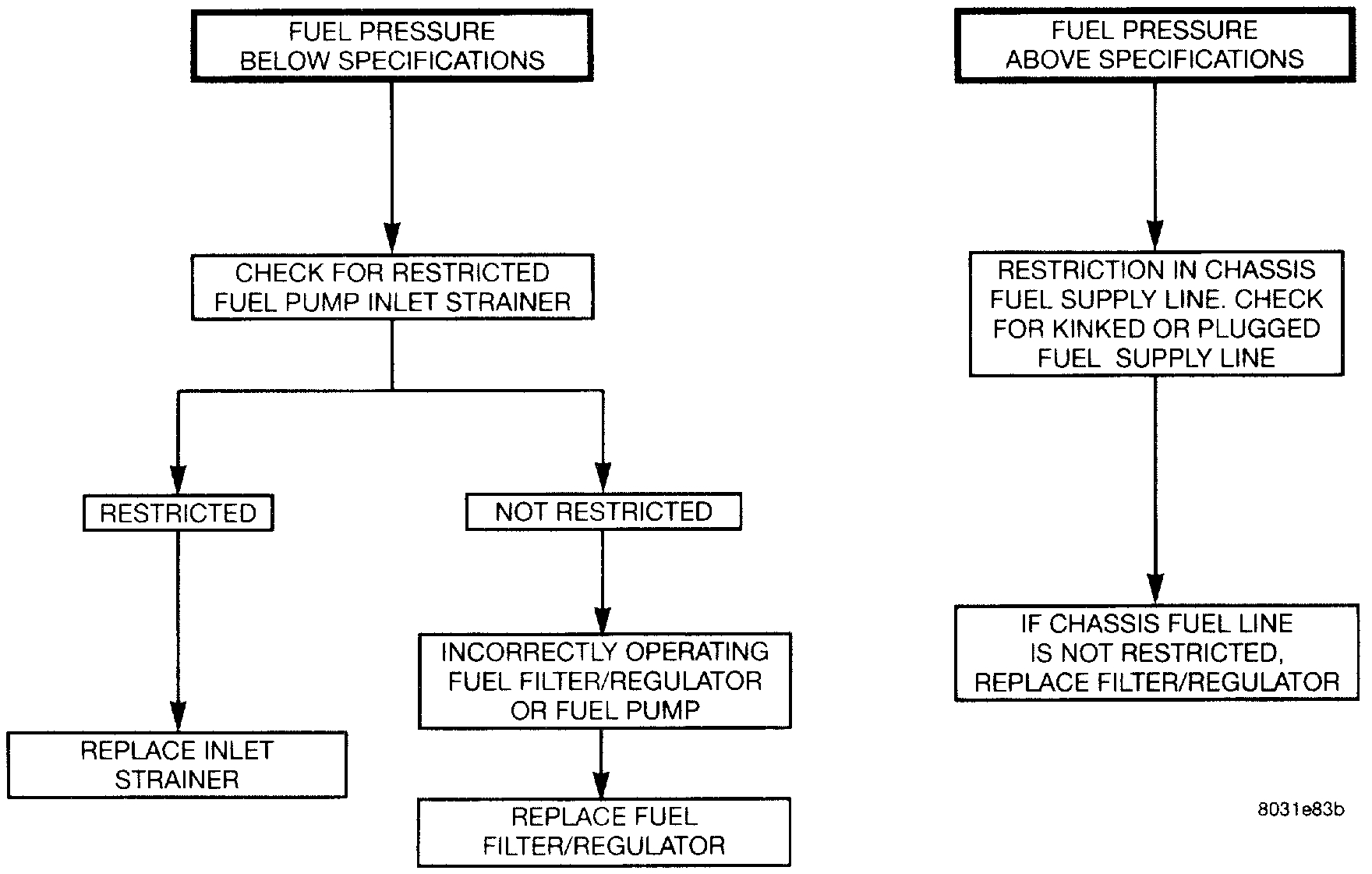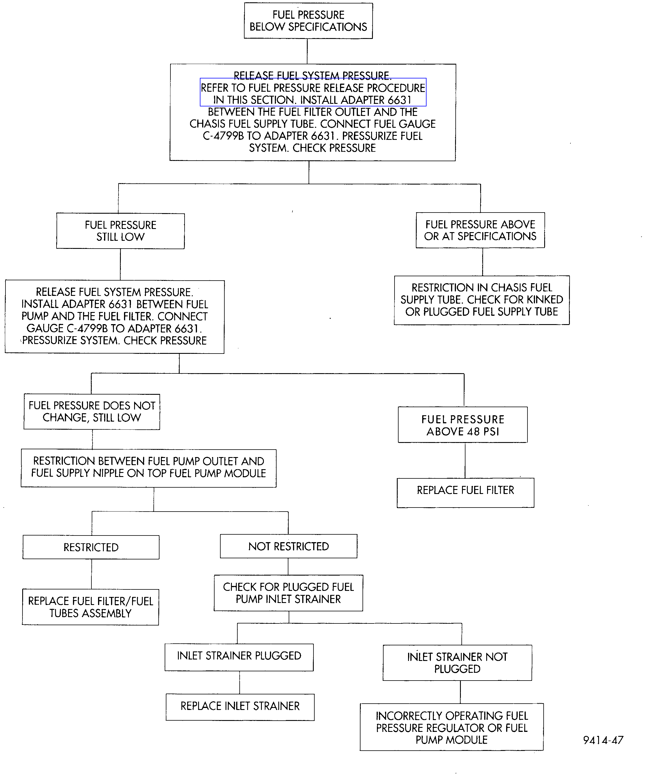- If fuel pressure is below specifications, refer to the Fuel Pressure Diagnosis Chart (Fig. 9) below.