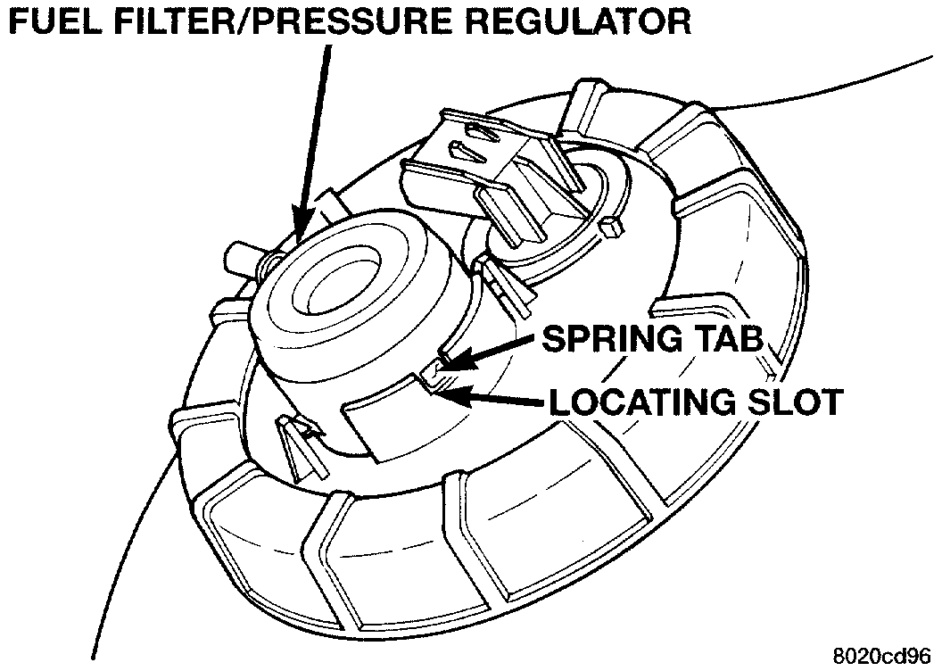 NOTE: The fuel filter/fuel pressure regulator is located on the top of fuel pump module. Fuel pump module removal is not necessary.