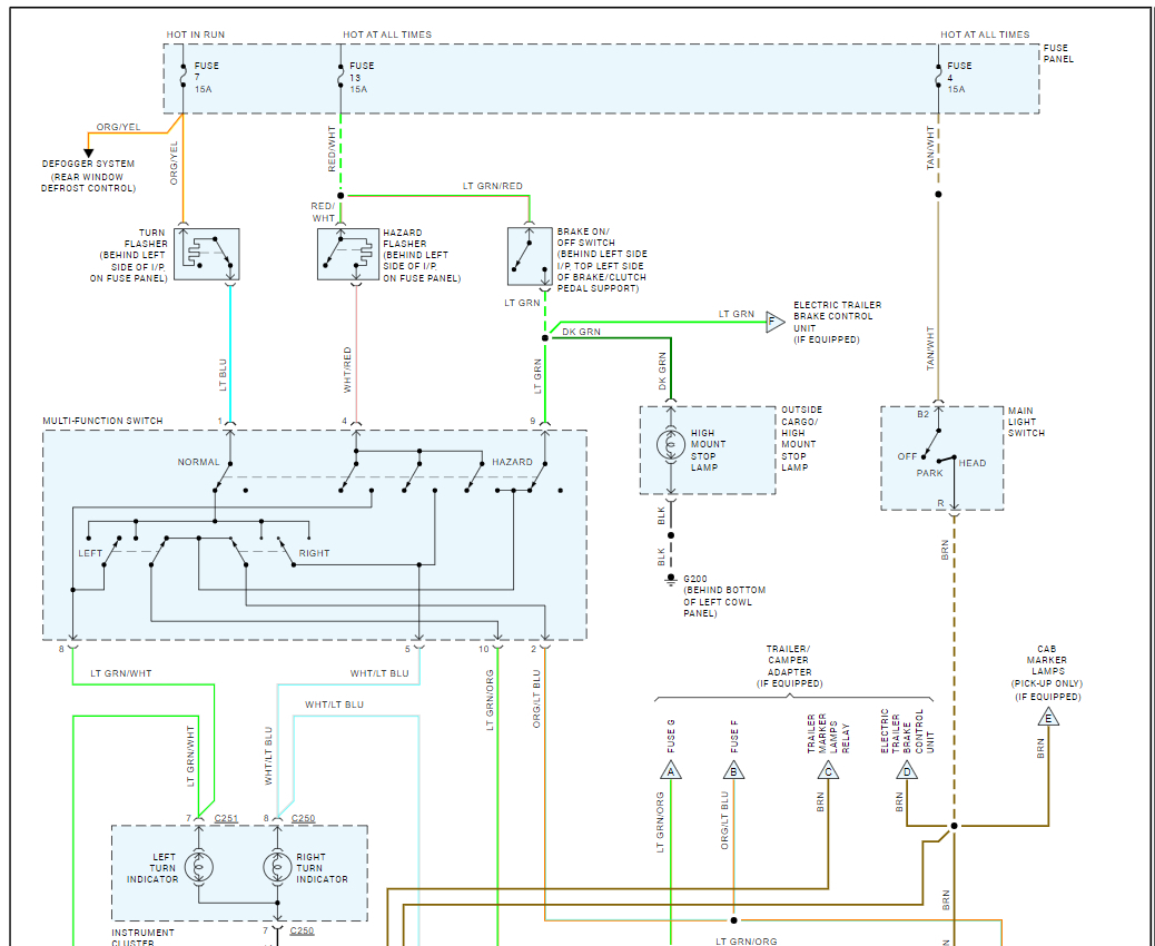 Good question for the question! There is only one part that can make this happens which is a bad multi-function switch. Here is how to change it out and I have included the brake light wiring diagrams so you can see how the system works.