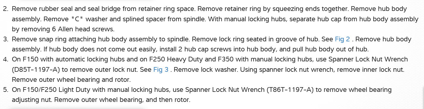 I have done this , but the automatic hubs have three washer one with splines, one that is smaller than the next one which both are just fit over the axle , but which one goes on first, I know the one with splines goes on last. There is a picture but I cant see it ? Ok first off you need to remove the outer hub, there should be three screws that hold the outer hub on. Then there is a snap ring in the hub that you will need a pic to make it easier to pull out. Then you can remove the inner section of the hub, Then there is a snap ring or c ring remove it, then remove the washers and the cam assembly then the retainer key and then the wheel bearing nut then the rotor will slide off with the bearing. Here is a pic with a brake down of everything.