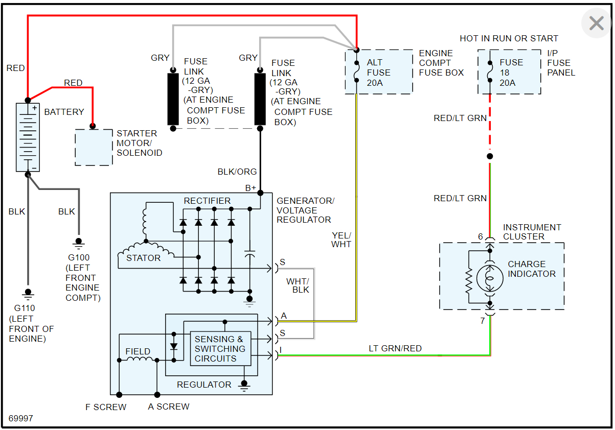 There is a fusible link on that wire that goes to the fuse block. Check the fusible link, as it is probably the part that's bunt out.
