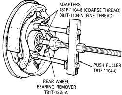 Safely support the rear of the vehicle on jack stands. Remove the tires, brake drum, remove the rear differential cover and drain the gear lube. Turn the axle until you see a set bolt that is on the side of the differential. Remove it, remove the long differential pin from within the spider gears. Once removed, push in on the axle and there is a clip that will fall out (it retains the axle in the differential. When replacing it, make sure it is fully seated). Once the clip is off, the axle will pull out. Once the axle is out, usa a pry bar to remove the axle seal. From this point, you will need a slid hammar. I believe on this year, the bearing is pressed into the axle housing. Using the slid hammar, remove the bearing, but make sure to measure the distance that the bearing is recessed into the housing first so you can replace the new one in the same way. NOTE: If the bearing is pressed on the axle, use the same tool to remove it, but place a score mark where the old bearing is located to replace it. Once you have reinstalled the new bearing, lubericate the neal axle seal with gear lube and tap it into place. Reverse the order to replace. PLEASE MAKE SURE THE AXLE RETAINER SLIDES ARE FULLY SEATED OR THE AXLE CAN COME OUT AND OFF THE VEHICLE. ALSO, WHEN YOU REPLACE THE AXLE SHAFT (WHICH HOLDS THE AXLES IN PLACE) MAKE SURE TO PROPERLY TIGHTEN THE RETAINER BOLT.