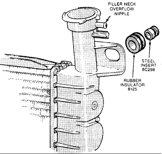 4. Inspect radiator tank upper mounting bushings for damage. Replace if damaged.