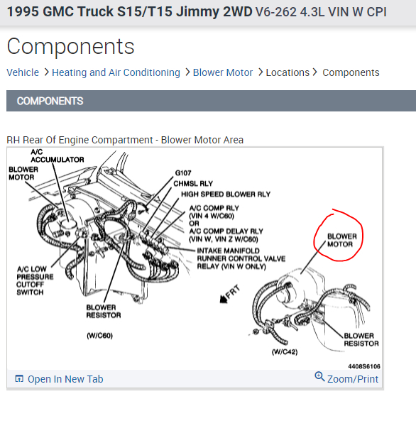 The blower motor is located on the passenger side firewall. You should able to access it from under the hood. (see diagram)