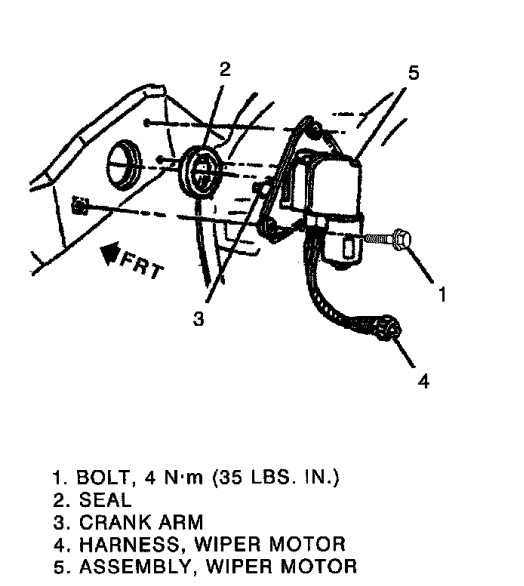 Loosen nuts holding the drive link to the wiper motor crank arm and remove the drive link.