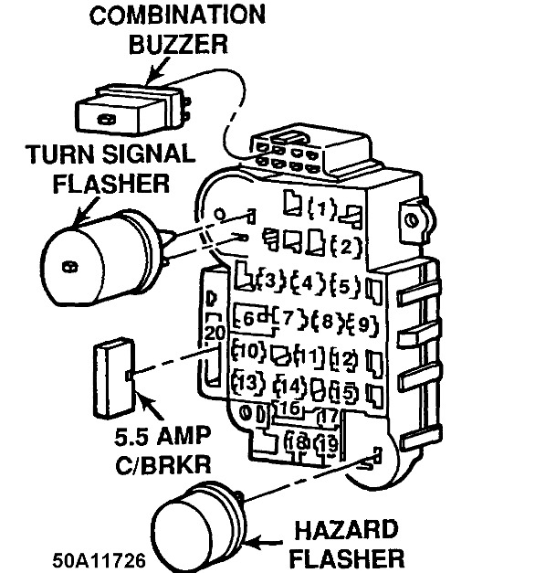 Ignition Switch-Back-up Lamps, A/C Relay Coil, Shift Selector, Speed Control, Aux. Cooling Fan Relay Coil.