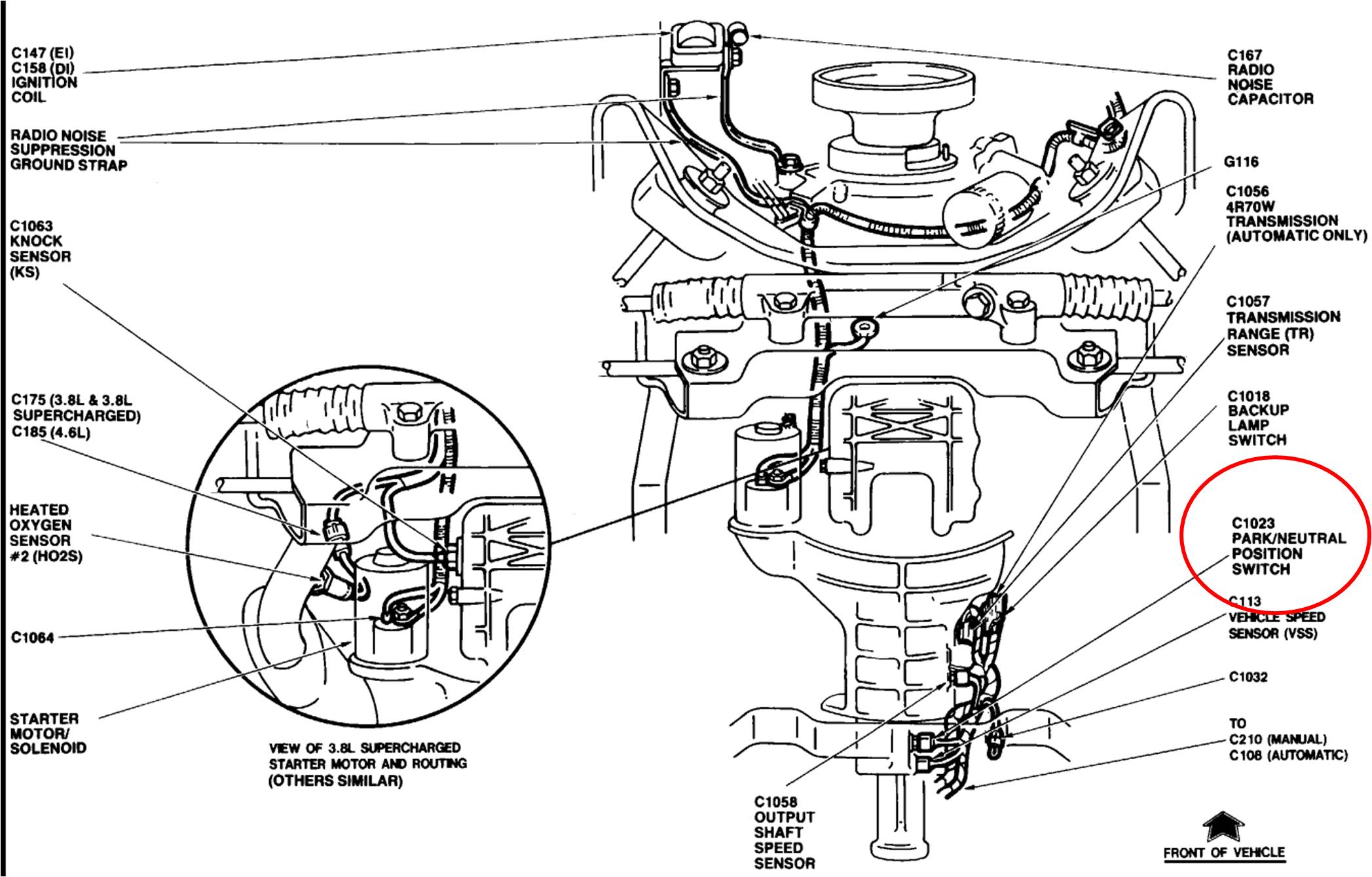 This is located on the left side of the transmission. You will need to jack the car up and brace it for safety, unplug, unscrew, install the new, install the plug...
