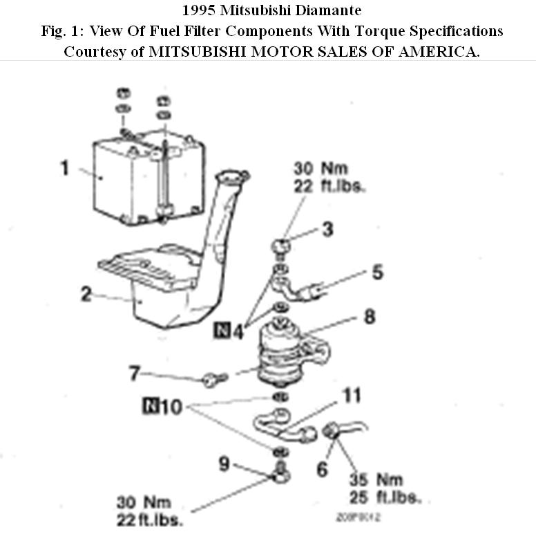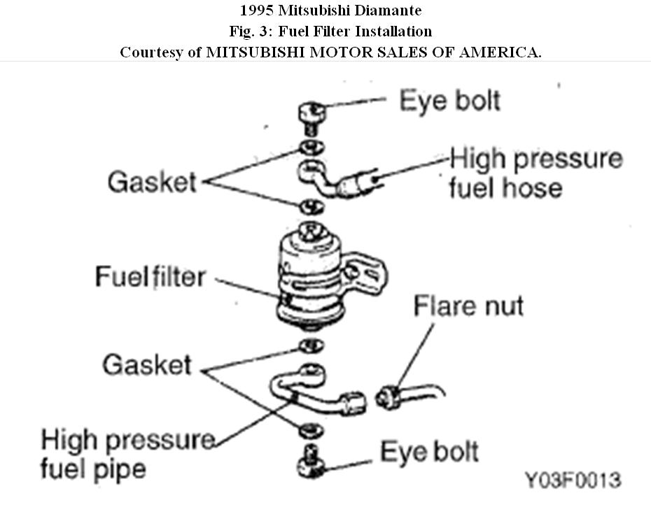 2. Holding the fuel filter nut, tighten the fuel main pipe's flare nut and eye bolt at the specified torque. Then tighten the filter to the bracket.