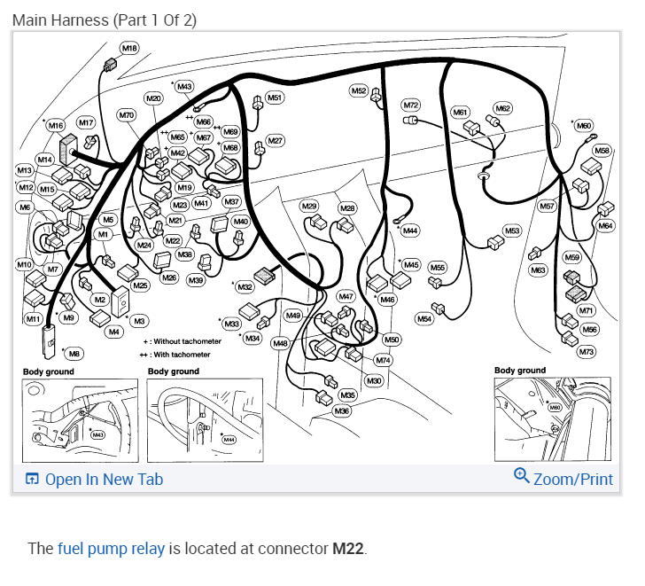 (1995 Nissan Lucino JJ )Trying to find fuel pump relay, not on two fuse/relay blocks under bonnet and not on panel under dash on right hand side (right hand drive model). Any other locations I have missed?