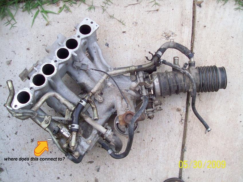 I found on the back side of the plenum on my 95 nissan pathfinder XE 4wd that there is what appears to be a vaccum line missing. When you plug it off with your finder the idle slows a little bit. I do not know where the line goes to and what it will affect. Is it something important and would this affect anything on the motor or gas mileage or anything? I have a pic included (i did not take the pic but have an arrow pointing to what im talking about)