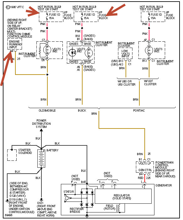 Tried disconnecting the battery neg wire and car dies. The alternators bench tested good. The last alternator was bench tested at 3 different stores just to make sure it was good. I have 12vdc at the end of the large positive battery cable at the alternator terminal with the car off. With the car running the voltage slowly drops about.1 VDC every minute or two with no accessories running. I disconnected the large wire from the alternator and started the car. At the alternator terminal, I read.2VDC. There is only one small red wire that plugs into the alternator. Does anyone have a schematic as to where that wire ends up? A schematic would be helpful to determine where to read for continuity or voltage. Thanks for your information.