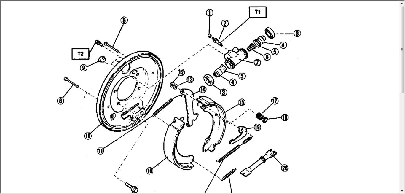 Remove brake drum. If difficult to remove brake drum, remove adjusting hole cover from back plate, then turn adjusting screw until shoe separate from drum.