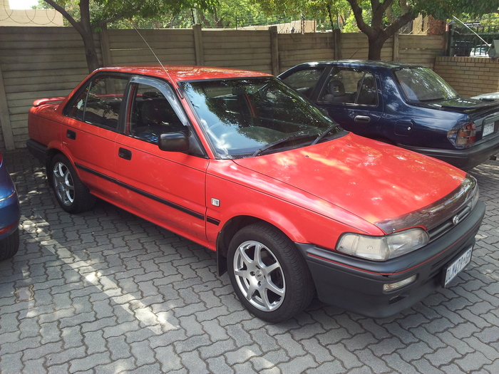 I drive Toyota corrola 1995 baby Camry sedan 1.3L. When I drive this symbol (!) Comes on like the hand brake light but its not the hand brake and the oil levels are full and its not the brake fluid.