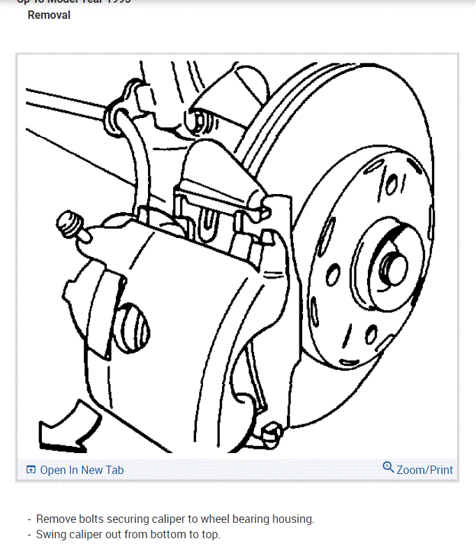 Once the brake caliper is removed, you will need to remove the brake caliper mount. There are two bolts behind the steering knuckle holding it in place. Remove the bolts, remove the mount, and then remove and replace the rotor.