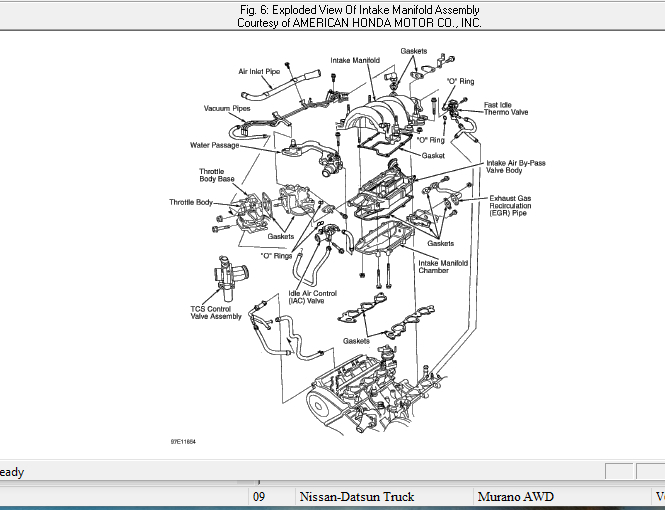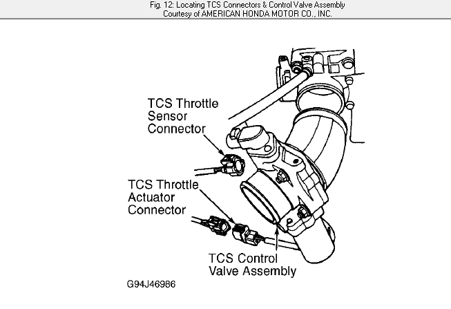 7. Remove traction control system upper and lower brackets. Disconnect TCS throttle sensor and actuator connectors. Remove TCS control valve assembly see(fig3)below. Do not remove breather pipe by pass hose. Remove engine wiring harness cover. Remove oil pressure switch connector. Remove engine ground cable.