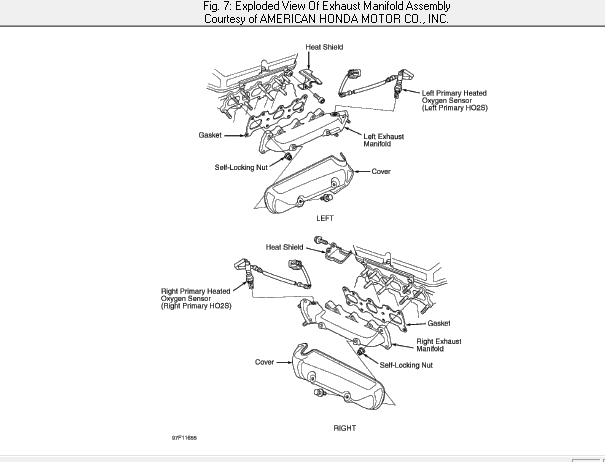 1. To install, reverse removal procedure ensure cylinder heads and cylinder block surface are clean. Install left and right exhaust manifolds using new gaskets. Apply oil to threads of exhaust manifold self locking nuts. Using crisscross pattern. Tighten locking nuts to specification in 2 or3 steps, starting with inner nut, see (fig8). Install exhaust manifold covers.