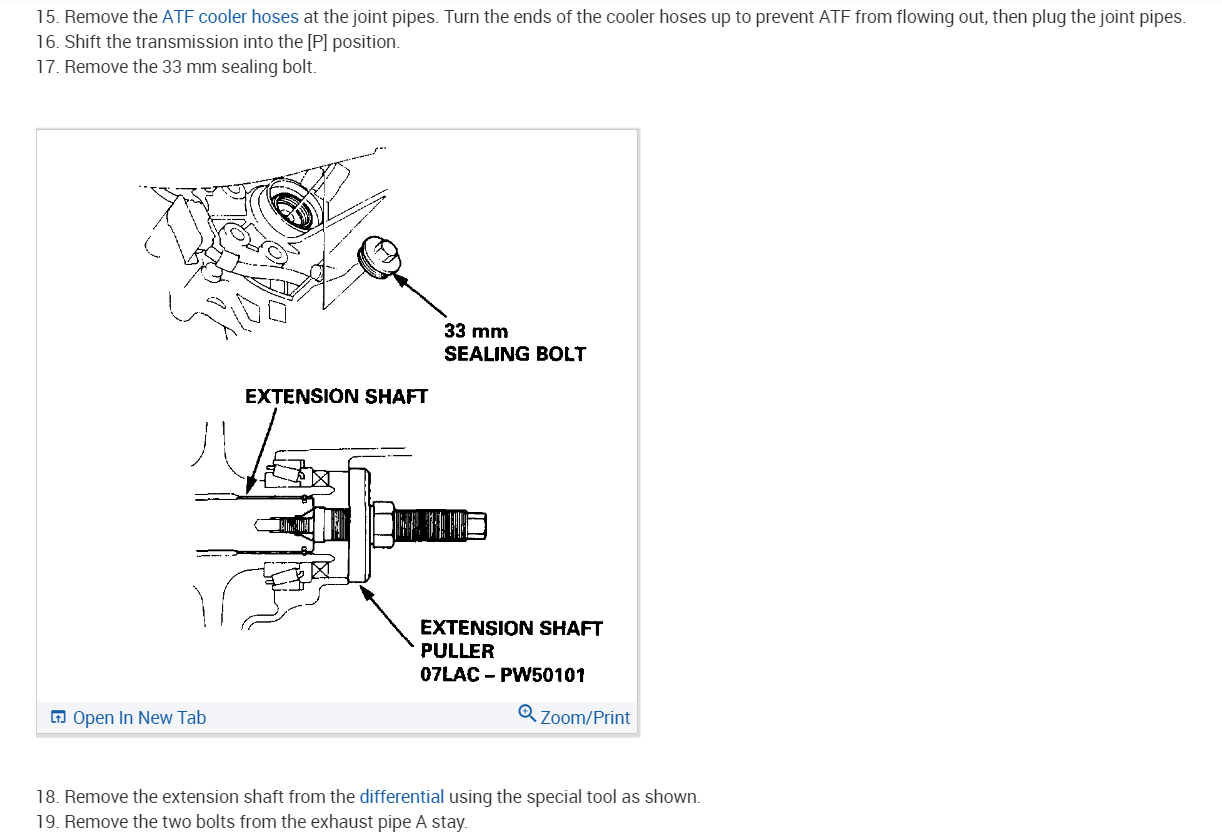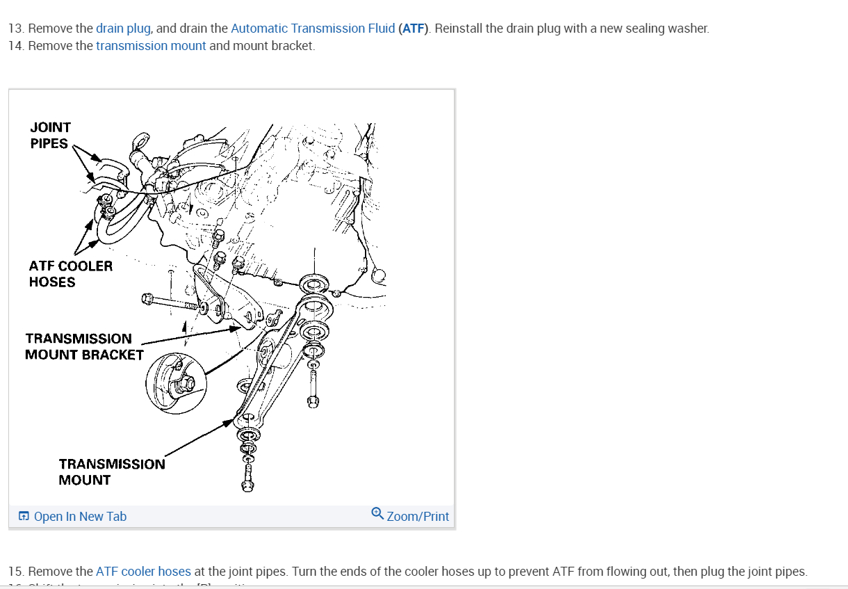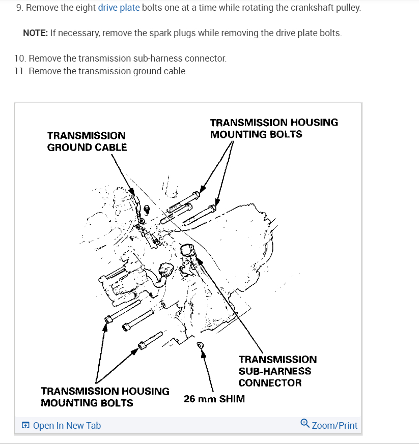 You will need to raise the car up on jackstands I would roll spare tries under the car as well for added safety. Then disconnect the battery, here are the instruction on how to remove the transmission witht he torque specs for when you are putting the car back together. Check out the images (Below). Please let us know if you need anything else to get the problem fixed.
