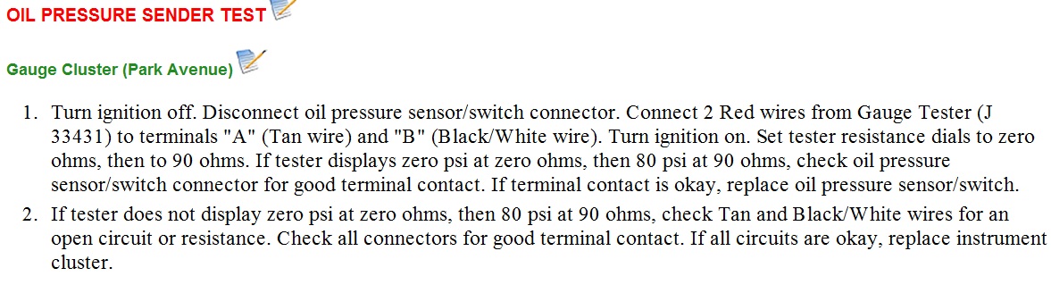 Below is info for testing. Also, you could use an analog gage in place of the sending unit, see if it does the same thing?