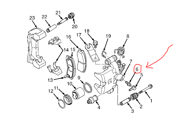Bleeder is #6 it will have a rubber dust cap on it #5 is this an ABS brake system? As the method to bleed will vary.