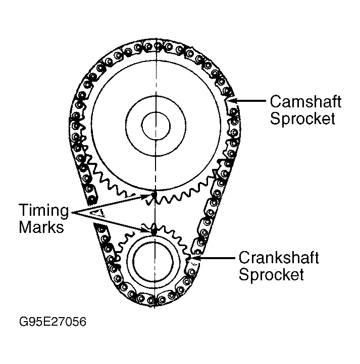 Where do the timing marks need to be when installing a new chain on a 96 jimmy with a 4.3