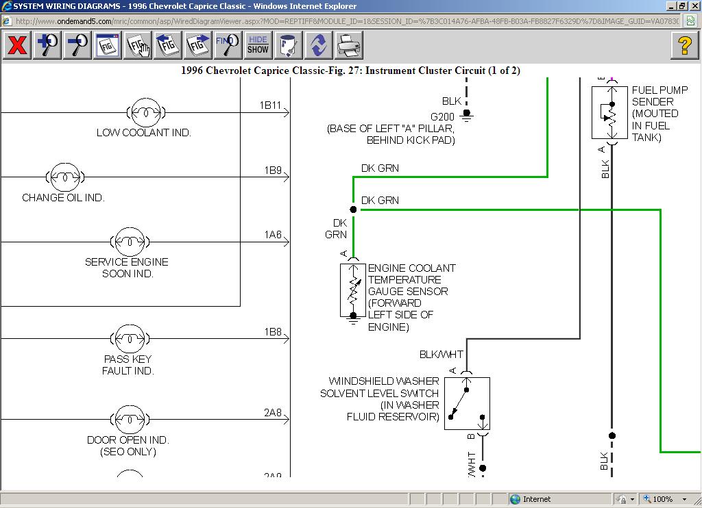 Look at the wire diagram I posted it shows a single green wire going to the gauge temp sensor. Also look at the sensor locations I posted it also shows a seperate sensor for the gauge. Find the sensor with a single green wire turn the key to the run position engine off. Ground that green wire and see if the temp gauge reads all the way hot. If it does you know the wire and gauge is good.