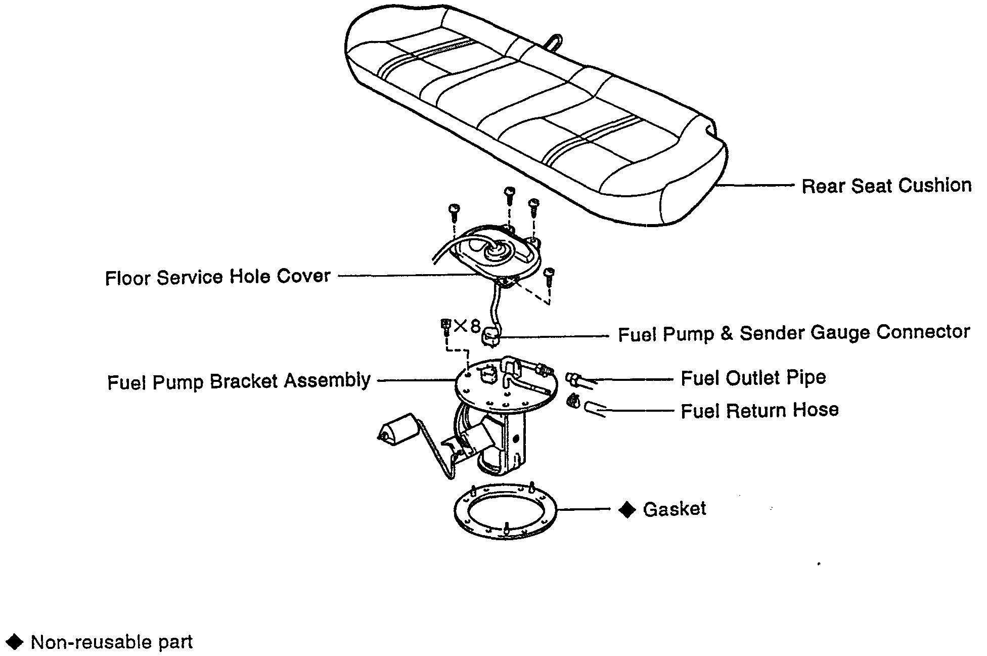 CAUTION: Do not smoke or work near an open flame when working on the fuel pump.